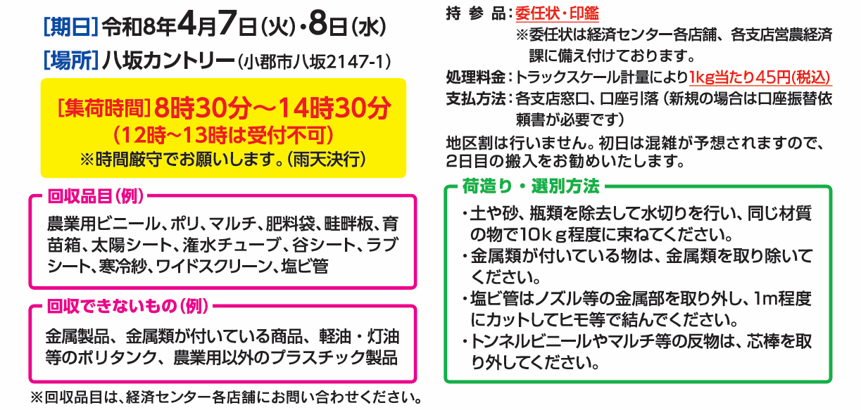農業用廃プラスチック等回収のご案内