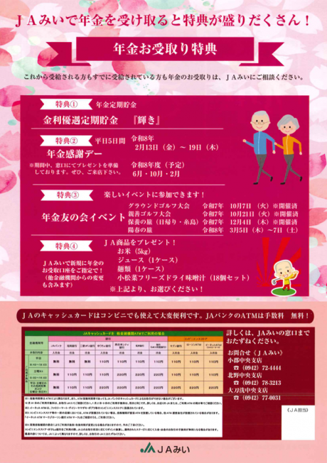 ◎JAみいで年金をお受け取りいただくとさまざまな特典があります!!