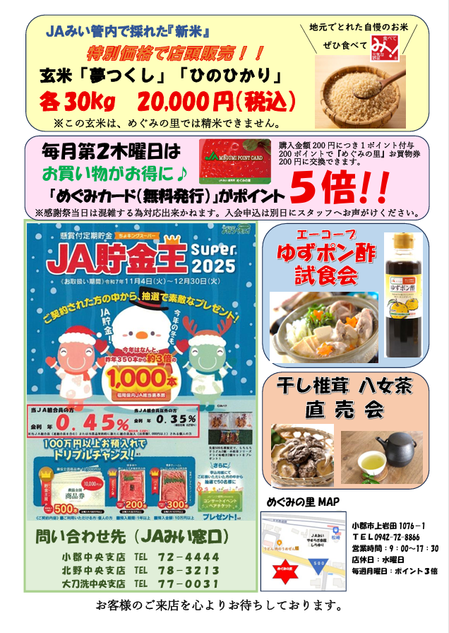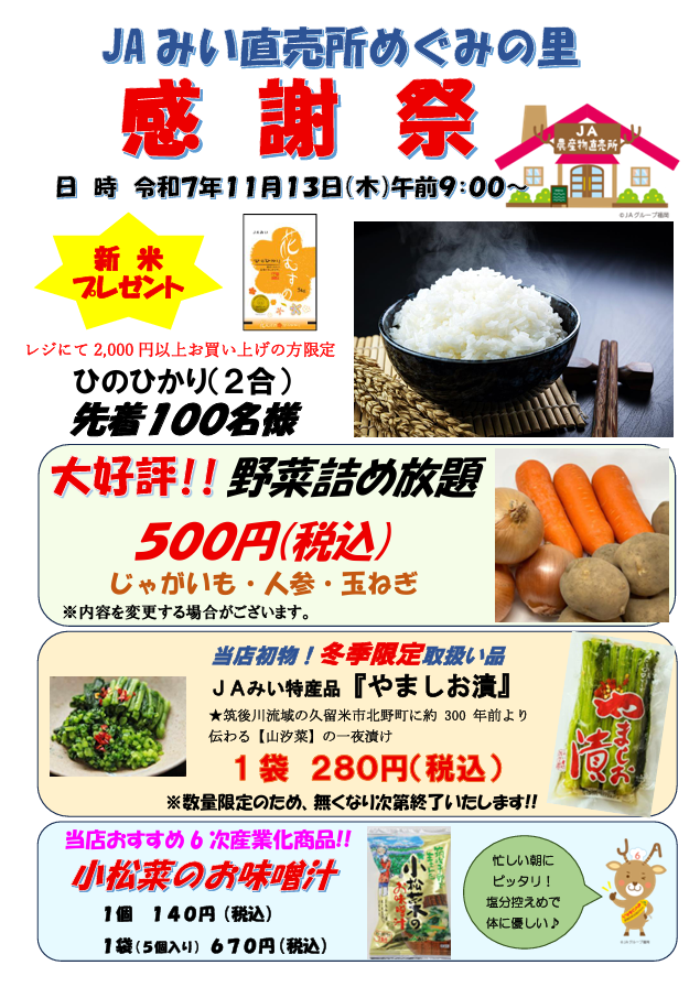 場所:JAみい農産物直売所めぐみの里(小郡市上岩田1076-1)