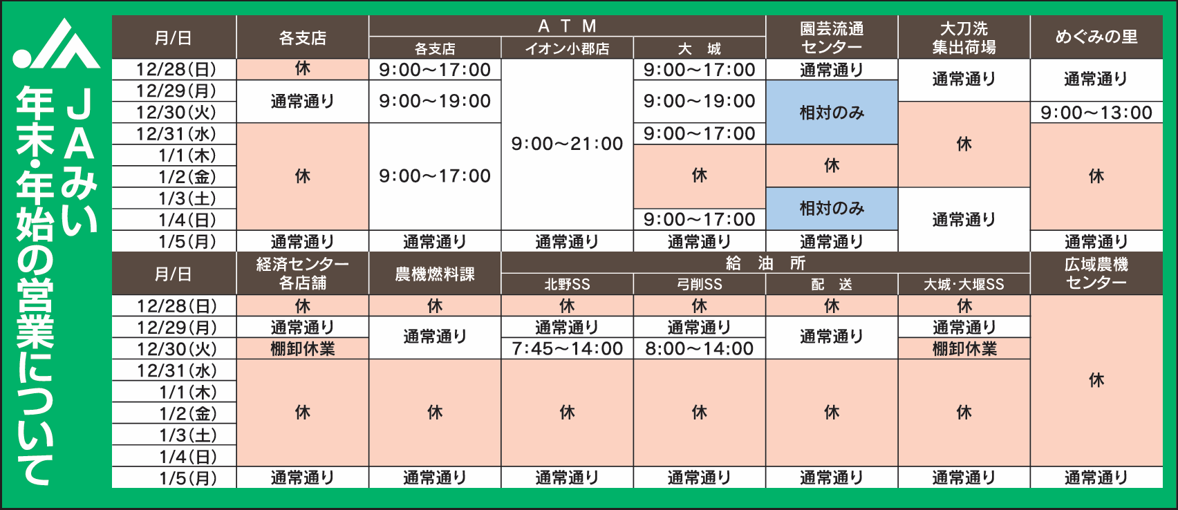 日頃より、JAみいをご愛顧いただき誠にありがとうございます。