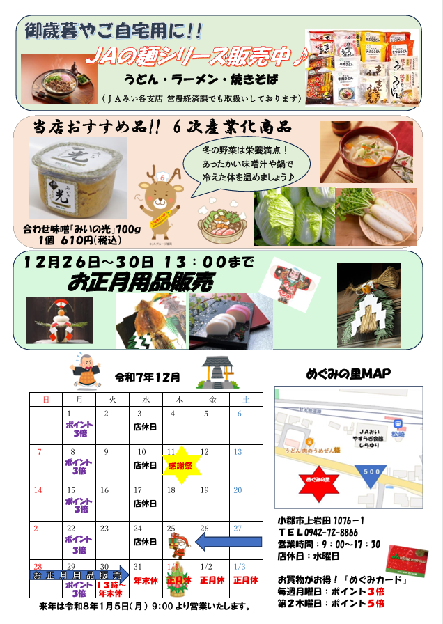 月に一度の人気イベント!めぐみの里感謝祭を開催します!! 旬の野菜や果物、花なども特別価格で販売いたしますので、ぜひご来店ください♪