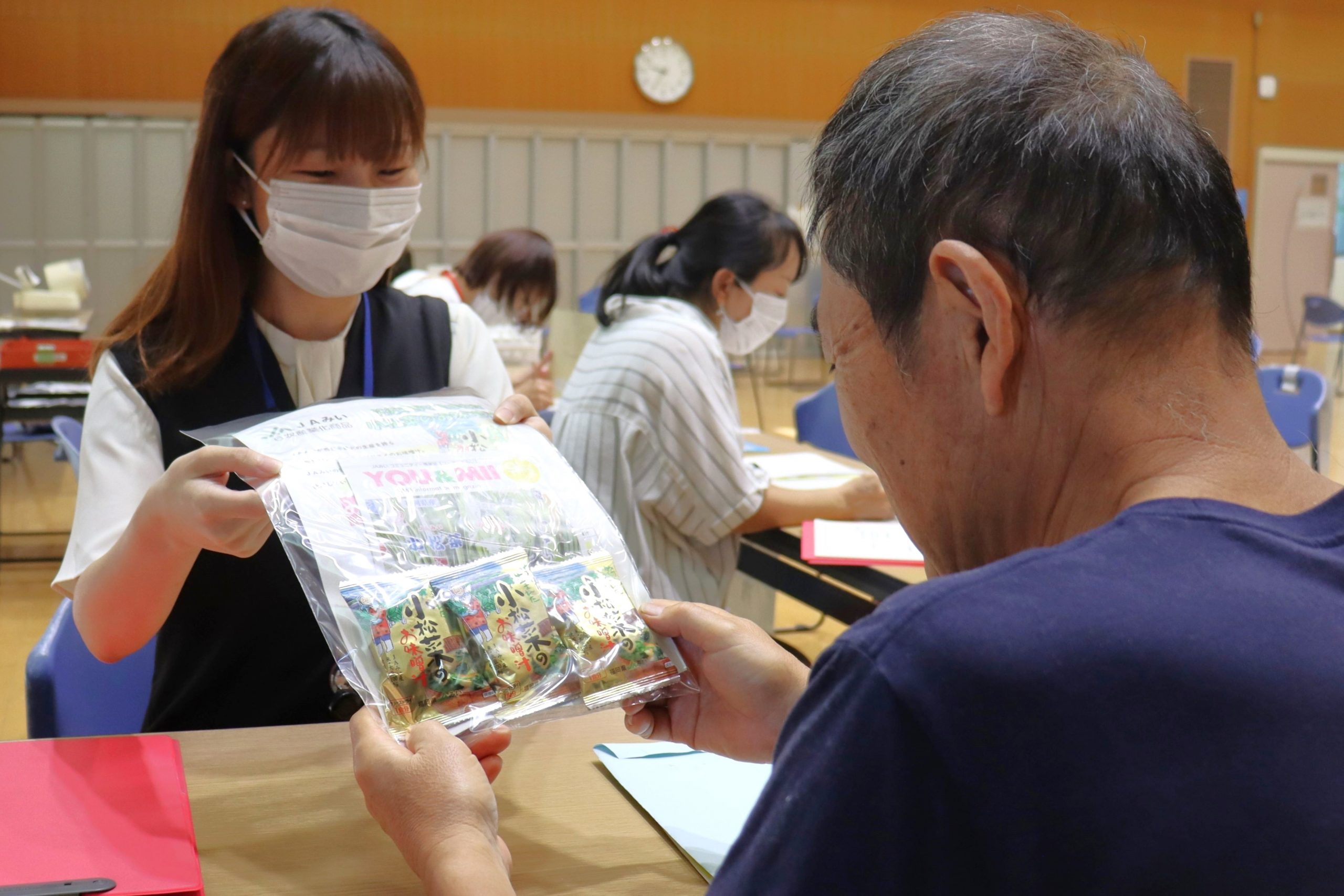 市の健診でお味噌汁配付