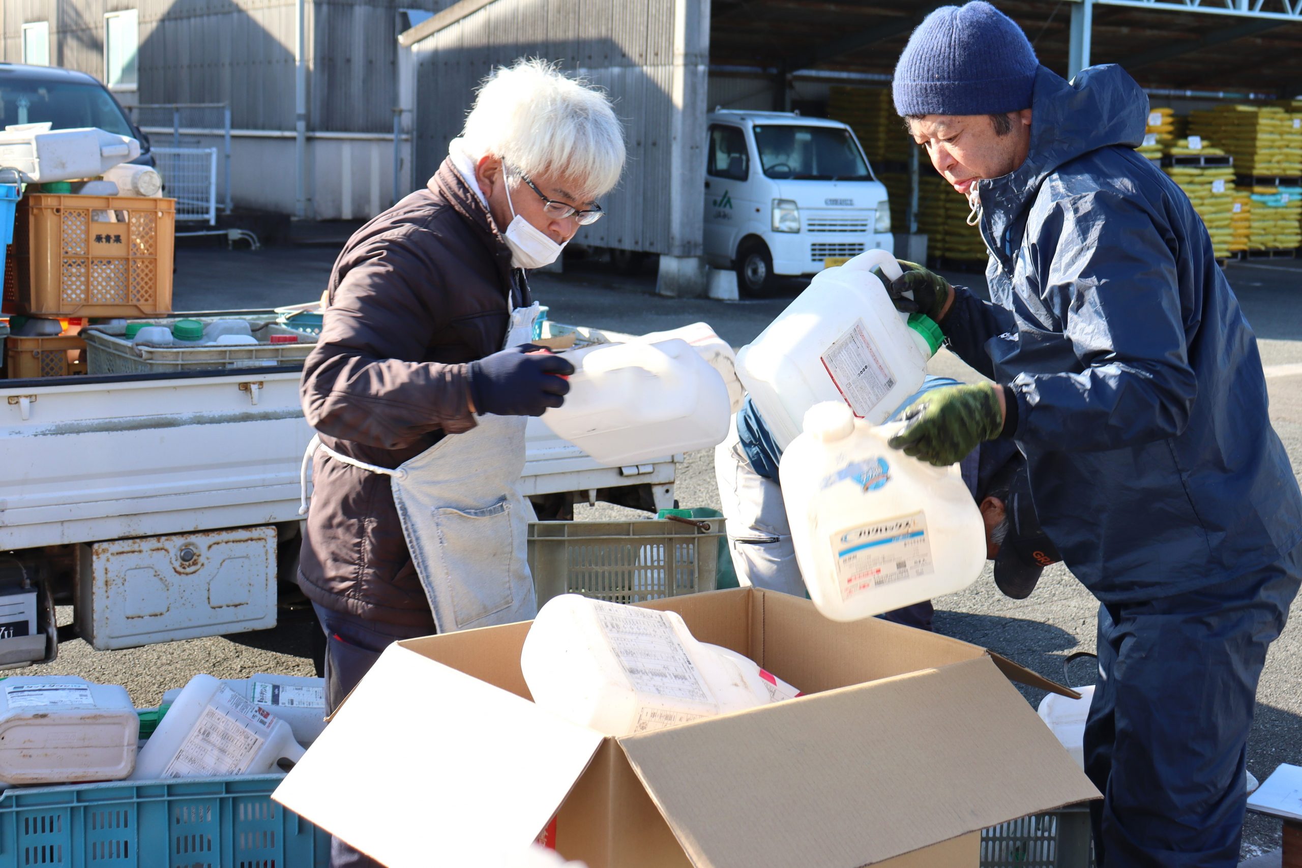 JAみい生産資材課は12月9日、経済センター小郡本店で廃棄農薬や農薬容器を回収しました。持続可能な開発目標(SDGs)への取り組みの一環で、適正処理を促し環境負荷の低減に繋げる狙いです。 組合員